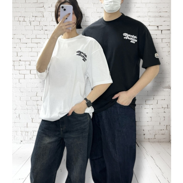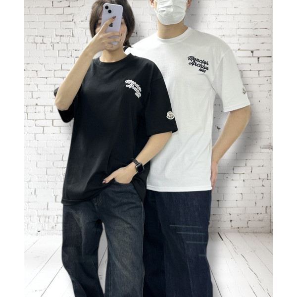 몽클 엠보싱자수 오버핏 CP 면 반팔